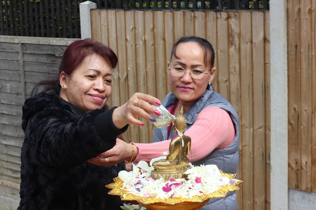 กิจกรรม ทำบุญสงกรานต์ สรงน้ำพระ รดน้ำดำหัว ปลูกต้นไม้ ดอกไม้ณ วัดสมเด็จพระมหาธีราจารย์ เซาธ์ เอนด์ สหราชอาณาจักรวันที่ 12-25 เมษายน 2564 ปลูกดอกไม้ ต้นไม้ติดป้าย